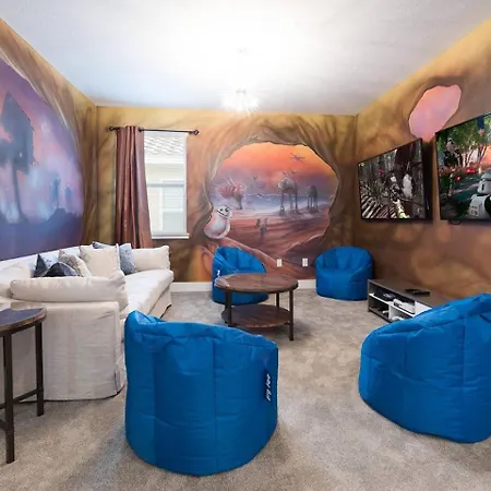 Located just 0.6 km from Orlando Tree Trek Adventure Amusement Park Zip Line, the 7-bedroom Breathtaking 8 Bdrm Home With Superhero Themed Bedroom At Encore Orlando offers a private swimming pool for guests to relax by.